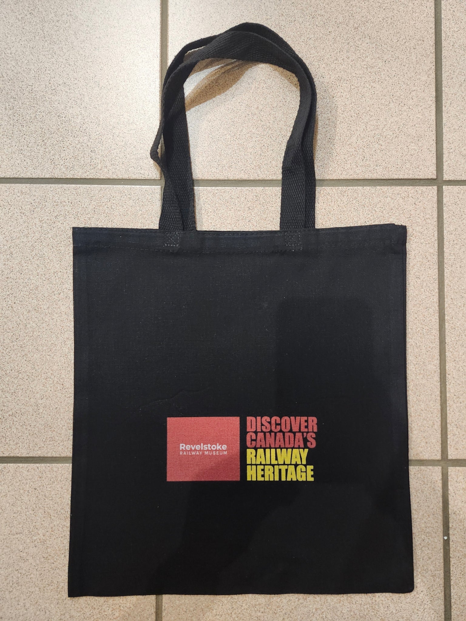 Black tote bag featuring a Canadian Pacific graphic with a steam engine and the words "Trans-Canada Limited".