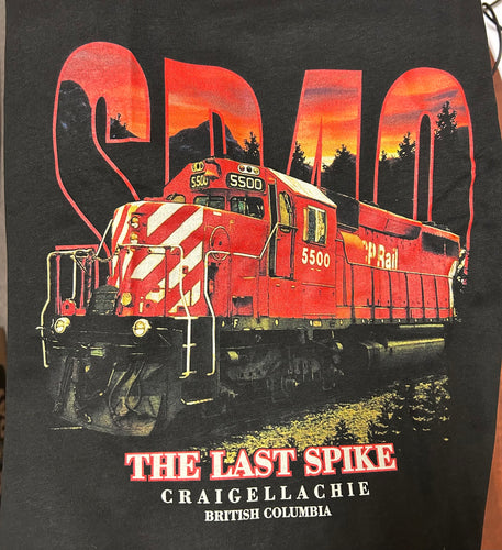 Red "The Last Spike SD40" 5500 Locomotive T-Shirt (Black)